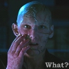 Description: Image: Hunter from Beastly stares a and touches his face. The word "What?" is on the lower right corner.